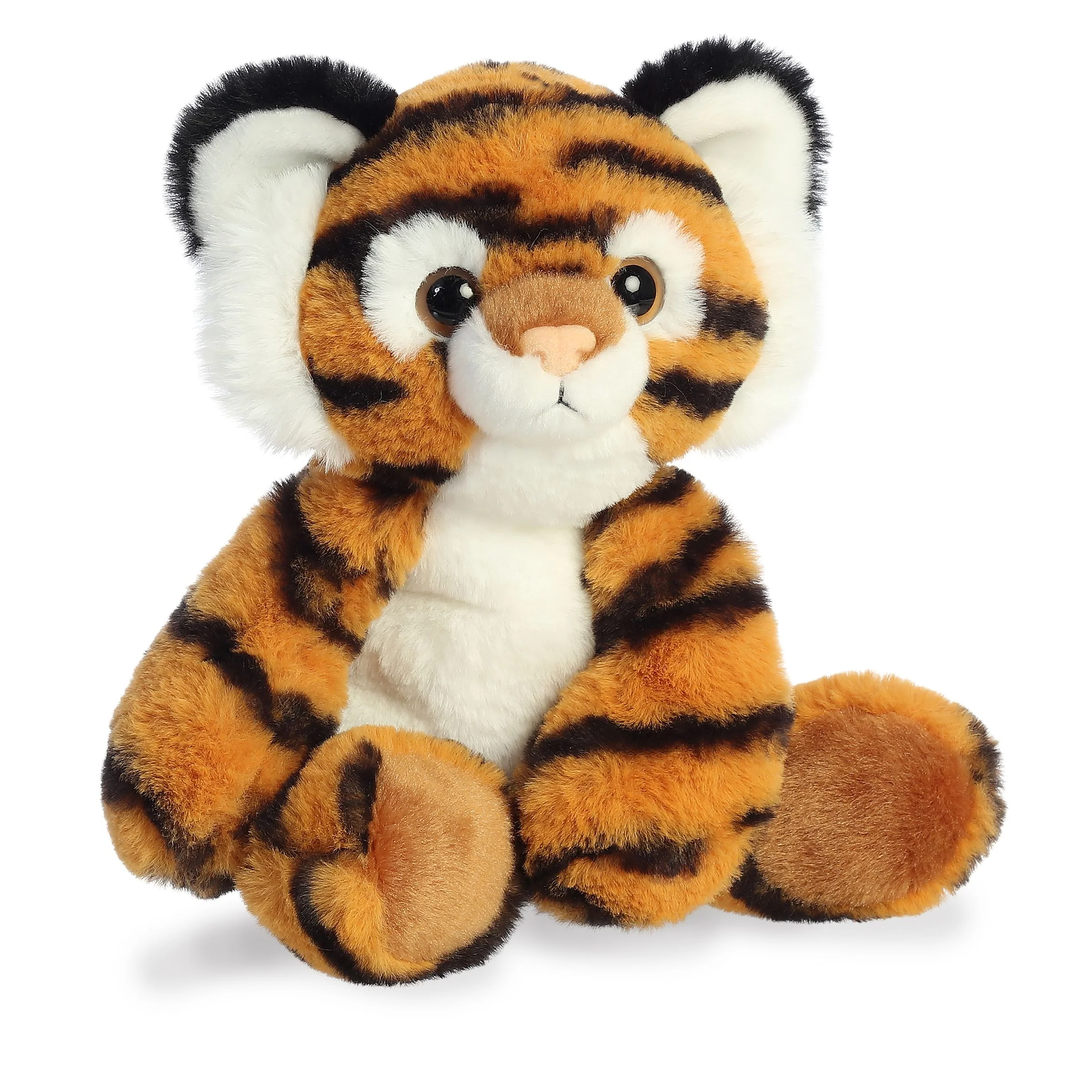 Large amber-rimmed eyes, a gentle blush nose, and contrasting cream accents on the cheeks, belly, and inner ears create an irresistibly expressive face. A lightly weighted base helps the little cat sit upright on shelves, desks, or dashboards, making it a charming everyday mascot.